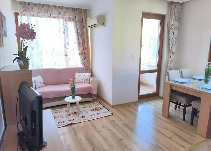 يوجد أيضًا منطقة المطبخ الصغير المجهز المزود بجميع أدوات المطبخ الضرورية. يمكن للضيوف الوصول إلى مطار بورغاس خلال 15 دقيقة بالسيارة.